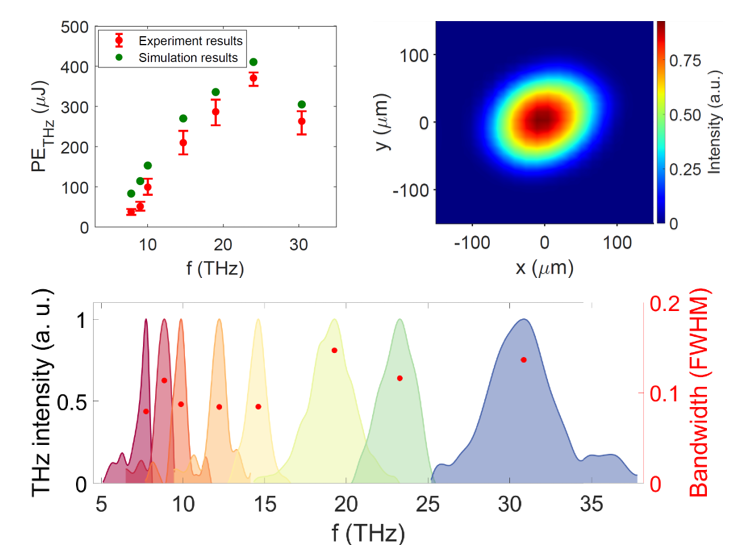 波长陆续在可调的强场太赫兹(THz)辐射在量子材料、分子催化、科学生命、非线性光学、场致超导等前沿科学研究以及下一代通信、气象与环境监测、安全检测、雷达探测等关键技术领域具有重要应用价值。然而,现在国际上强场太赫兹辐射的产生主要集中在0.1–5 THz低频范围内,如何在5–30 THz频段实现陆续在可调且具高强度输出的太赫兹辐射,不断是该领域亟待解决的关键技术难题。